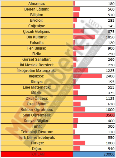 Milli Eğitim Bakanlığı 2017 Şubat 20.000 Öğretmen ataması tahmini branş dağılımı: