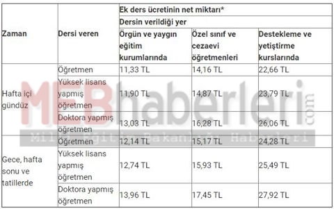 Aşağıdaki tabloda öğretmenlerin 2017 yılının ilk 6 ayında alacakları ek ders ücretlerini görebilirsiniz.