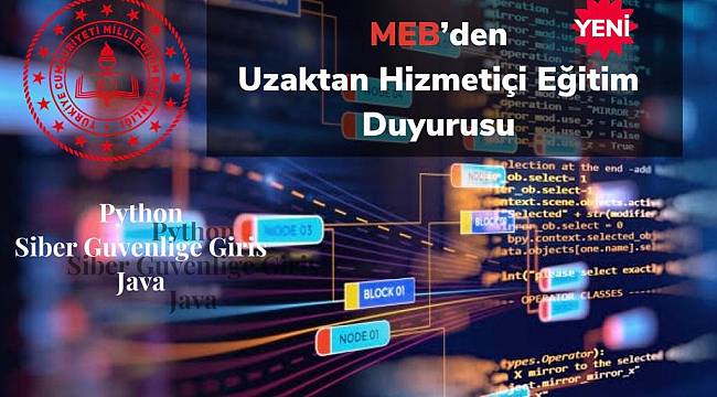 "Uzaktan egitim mesleki gelisim programlarimizdan "Python, Siber Guvenlige Giris, Java, Veri Tabani, Bilgisayar Destekli Tasarim, Nesnelerin Interneti, Dijital Girisimciligin Temelleri, Bilgi Islemsel Dusunme, Afet ve Muze Egitimi Kurslari ile Proje Danismanligi Semineri" basvurulari MEBBIS uzerinden tum ogretmenlerimizin basvurusuna acilmistir."Başvurular MEBBİS Üzerinden Yapılacak